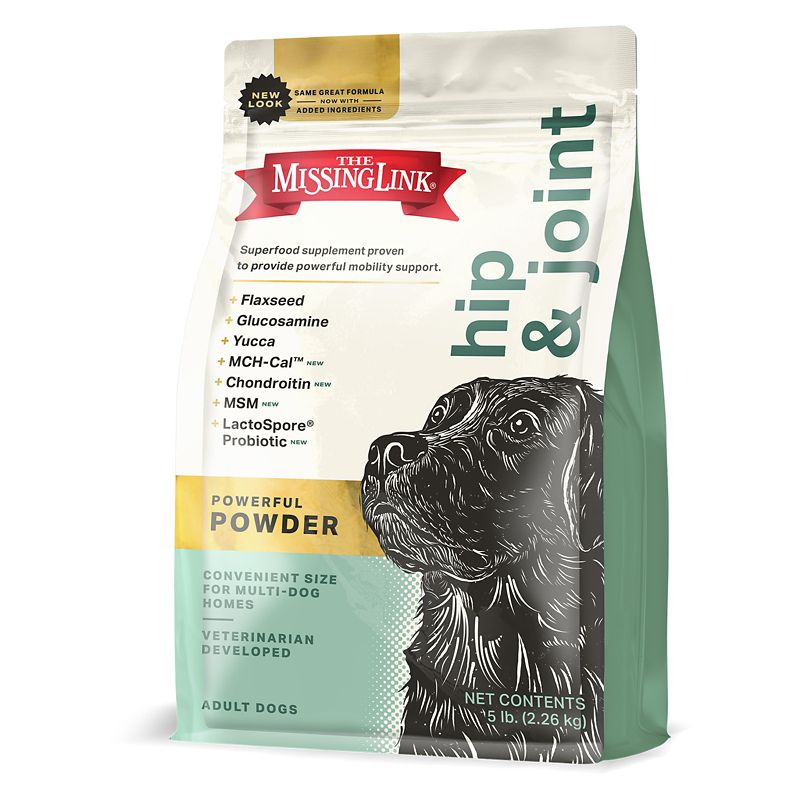 The only supplement your dog will need! In nature, animals consume foods that are whole, raw and fresh, while domestic animals generally only have a diet of processed foods. The Missing Link was developed to target the nutritional gap between what nature provides and what is available in commercial foods. Formulated with all natural, non-genetically modified, human-grade whole foods, carefully chosen for their nutrient profile. For years, veterinarians and pet owners have added The Missing Link to commercial foods to promote general health and well being, better digestion, healthy skin and coat, increased energy, less shedding, reduced allergies and less joint stiffness and pain. The Missing Link Plus formula includes the benefits of shellfish based Glucosamine (the most powerful form of Glucosamine) to stimulate the production of collagen.