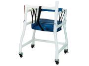 Adapt-A-Walker is an easy-to-move device used by children as a standing walker or for scooting around while seated. This sturdy PVC walker rolls easily both indoors and outdoors. It has contoured frame and no sharp edges to avoid skin breaks during transfers. Adapt-A-Walker has seat which comes with solid support base to prevent sagging. Reinforced at all stress related areas. Restraining free open/close gate. Wider base for better stability. Push button front opening. Padded backrest. Internal Width: 18". External Width: 22". Total Length: 30". Seat Height: 21". Height with Casters: 44". Arm Height Adjustments: 37" - 40". Fits Child: 60" - 72".